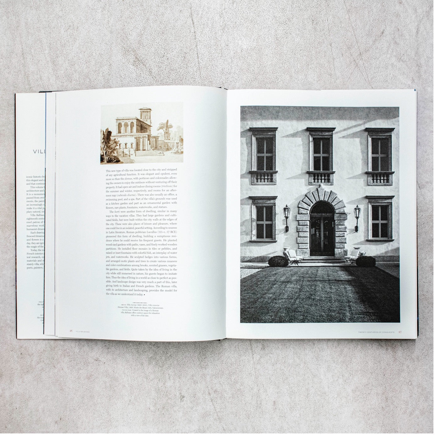 This 246-page art book details the history of Lake Como during the Renaissance in the 16th century, as well as the historical changes and developments of Villa Balbiano over the centuries.