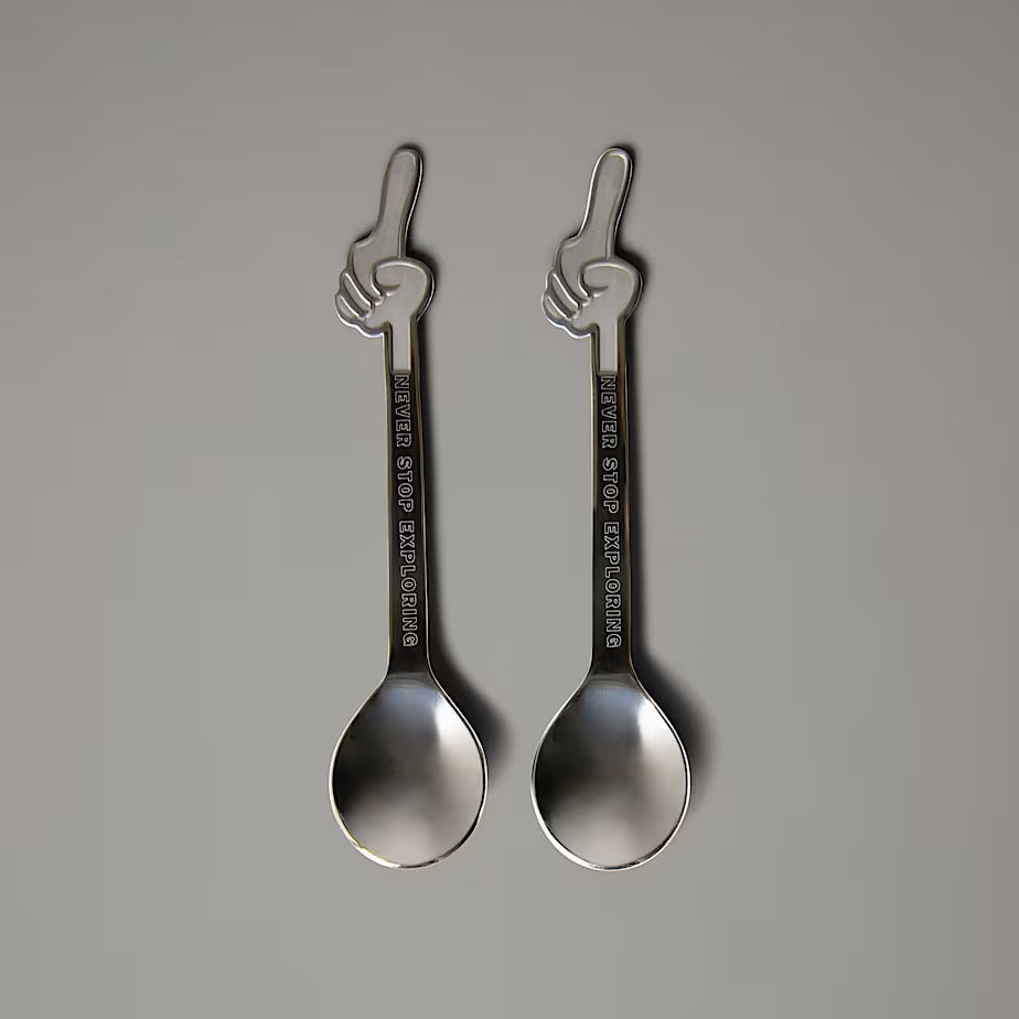 Bialetti x The North Face coffee set includes a Moka Express 3-Cup coffee maker, two metallic cups with matching spoons and a bag of freshly ground Bialetti coffee – everything you need for the perfect break.